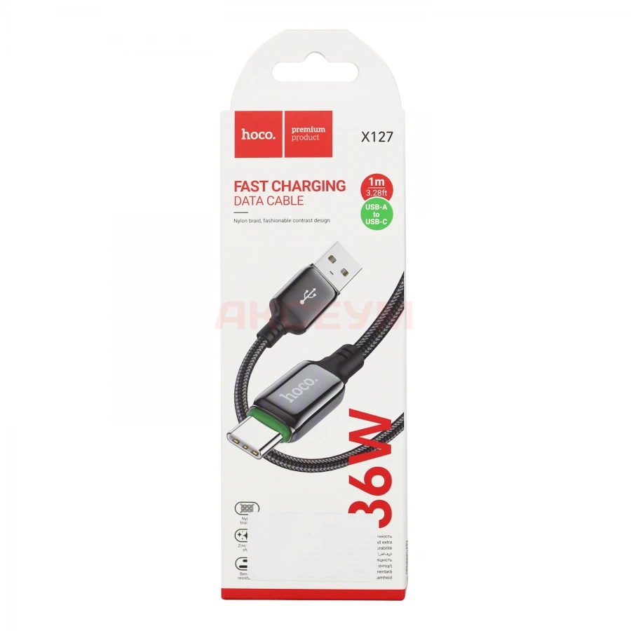 Кабель USB - Type-C Hoco X127 (3A/36W/оплетка нейлон) черный