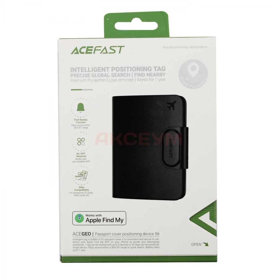 GPS трекер метка Acefast S6 (обложка для паспорта) черная